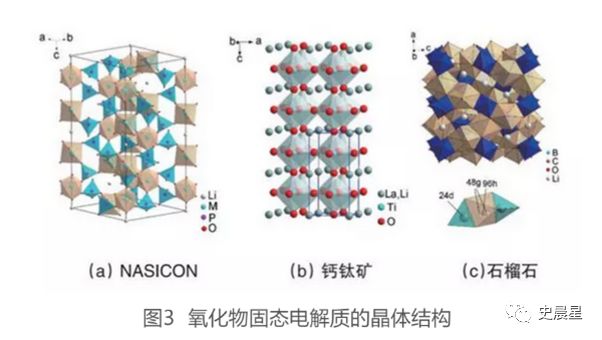 氧化物固體電解質(zhì)按照物質(zhì)結(jié)構(gòu)可以分為晶態(tài)和非晶態(tài)兩類(lèi),晶態(tài)電解質(zhì)包括鈣鈦礦型、NASICON型(Na快離子導(dǎo)體)、石榴石型、LISICON型等,玻璃態(tài)(非晶態(tài))氧化物的研究熱點(diǎn)是用在薄膜電池中的 LiPON 型電解質(zhì)和部分晶化的非晶態(tài)材料。