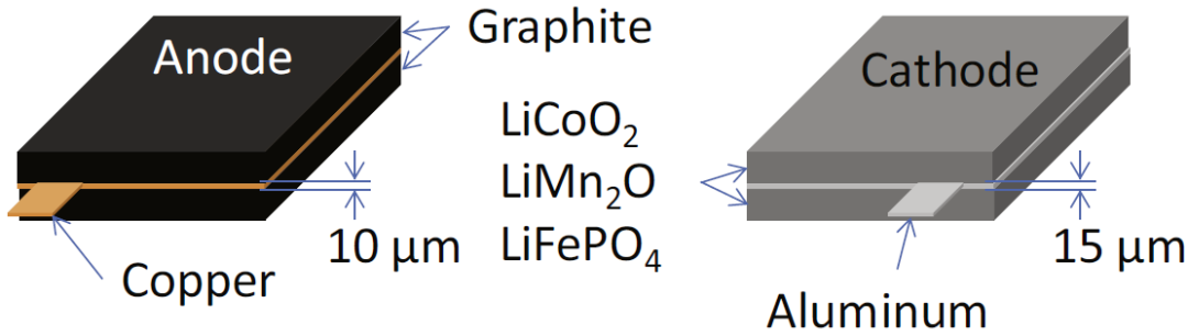 圖1 鋰離子電池正負極極片示意圖