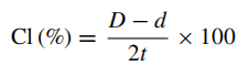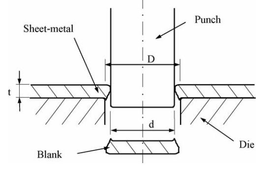其中,CL為沖切間隙,D和d是上下模頭的尺寸,t是板材厚度,如圖2所示。而考慮到模具的磨損時,有效沖切間隙Cle定義為公式(2):